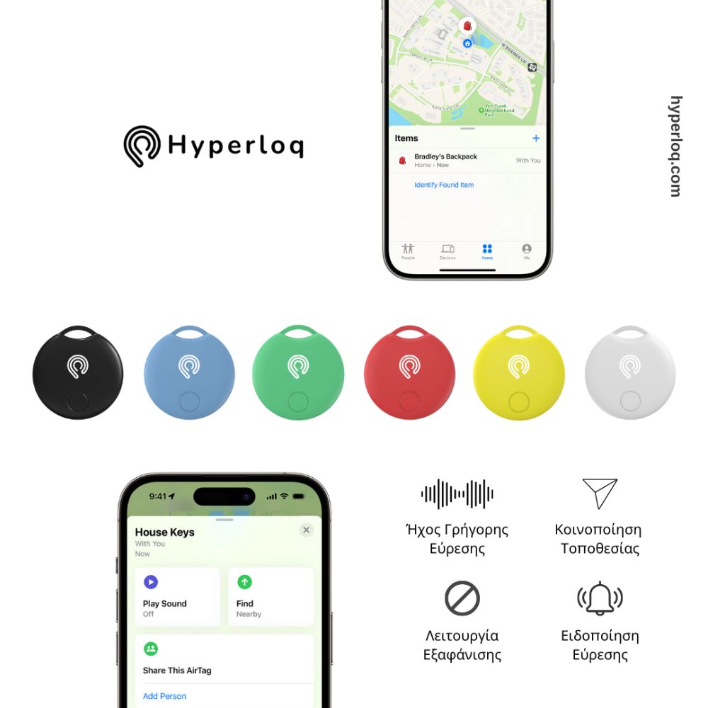 Αυτή η συσκευή διασφαλίζει ότι όλα τα σημαντικά υπάρχοντά σας απέχουν μόλις ένα άγγιγμα από το να βρεθούν. Συνδέστε εύκολα το Hyperloq™ Smart Tag με το smartphone σας χρησιμοποιώντας τη φιλική προς το χρήστη εφαρμογή μας που είναι διαθέσιμη για iOS. Είτε πρόκειται για τα κλειδιά, το πορτοφόλι, το ποδήλατο, το αυτοκίνητο ή ακόμα και το κατοικίδιό σου, το Hyperloq™ είναι εκεί για να τα κρατάς πάντα κοντά. Αντικαταστήστε την περιορισμένη εμβέλεια των ανιχνευτών Bluetooth με την ανώτερη ισχύ του GPS. Το έξυπνο Hyperloq™ επιτρέπει την ακριβή παρακολούθηση τοποθεσίας σε μεγαλύτερες αποστάσεις, διασφαλίζοντας ότι μπορείτε να βρείτε τα αντικείμενά σας σε Παγκόσμια Εμβέλεια. Η εξελιγμένη τεχνολογία μας σας κρατά συνδεδεμένους με τα αντικείμενά σας ανά πάσα στιγμή, μειώνοντας σημαντικά τον κίνδυνο απώλειας. ΜΕΙΝΕΤΕ ΣΕ ΕΓΡΗΓΟΡΣΗ ΜΕ ΑΜΦΙΔΡΟΜΕΣ ΕΙΔΟΠΟΙΗΣΕΙΣ ΜΕΓΑΛΗΣ ΔΙΑΡΚΕΙΑΣ ΚΑΙ ΜΕ ΧΑΜΗΛΗ ΣΥΝΤΗΡΗΣΗ Η έξυπνη ετικέτα μας έχει σχεδιαστεί για αντοχή. Χρησιμοποιεί προηγμένη τεχνολογία χαμηλής κατανάλωσης για να παραμείνει ενεργή και λειτουργική για περισσότερο από ένα χρόνο χωρίς να χρειάζεται επαναφόρτιση. Όταν έρθει η ώρα να το ενεργοποιήσετε, η διαδικασία είναι γρήγορη και εύκολη, διασφαλίζοντας ότι η παρακολούθηση σας δεν θα σταματήσει ποτέ. Επιπλέον, ο σχεδιασμός του επιτρέπει την καθημερινή του μεταφορά. ΚΟΜΨΟ ΚΑΙ ΛΕΙΤΟΥΡΓΙΚΟ Το Hyperloq™ Smart Tag είναι τόσο κομψό όσο και λειτουργικό. Ο κομψός, μοντέρνος σχεδιασμός του όχι μόνο ταιριάζει άψογα στη ζωή σας αλλά και τον βελτιώνει. Συνδέστε το σε οτιδήποτε φοβάστε να χάσετε και απολαύστε την ηρεμία, όμορφα. Είτε είναι σε κατοικίδιο είτε στην αγαπημένη σας τσάντα, το Hyperloq™ το συμπληρώνει τέλεια. Ζήστε την αυτοπεποίθηση και την ανακούφιση ότι δεν θα χάσετε ποτέ ξανά τα σημαντικά σας αντικείμενα. Είτε ταξιδεύετε, είτε είστε απασχολημένοι στη δουλειά είτε απλώς κάνετε την καθημερινή σας ρουτίνα, το Hyperloq™ ενισχύει την αποτελεσματικότητα και την ασφάλεια της ζωής σας. Το Hyperloq™ Smart GPS Tag συνδέεται με το iPhone σας μέσω της εφαρμογής Find My Apple ή Εύρεση στα Ελληνικά και χρησιμοποιεί τη δωρεάν εφαρμογή για να εντοπίσει τα αντικείμενά σας. Είτε είναι πάνω σε κλειδιά, πορτοφόλια ή τσάντες, η συσκευή στέλνει ένα σήμα που μπορεί να παρακολουθηθεί στην εφαρμογή του τηλεφώνου σας για να σας βοηθήσει να βρείτε γρήγορα τα υπάρχοντά σας. Το Hyperloq™ είναι συμβατό με όλες τις σύγχρονες συσκευές iOS. Απλώς κατεβάστε την εφαρμογή Find My ή Εύρεση από το App Store, αντιστοιχίστε τo με το κινητό σας και ξεκινήστε την παρακολούθηση των αντικειμένων σας. Η μπαταρία του Hyperloq™ Smart GPS Tag μπορεί να διαρκέσει πάνω από 10 μήνες ανάλογα με τη χρήση. Χρησιμοποιεί μια μπαταρία CR2032 η οποία αντικαθίσταται εύκολα. Απλά γυρίστε το πίσω κάλυμμα της ετικέτας, αντικαταστήστε την μπαταρία και είστε έτοιμοι. Απολύτως! Μπορείτε να συνδέσετε μέχρι 16 HyperLoq™ στην εφαρμογή Find My ή Εύρεση και να ονομάσετε κάθε μία με βάση το αντικείμενο στο οποίο είναι συνδεδεμένη (π.χ. κλειδιά, πορτοφόλι, τσάντα φορητού υπολογιστή). Αυτή η λειτουργία σας επιτρέπει να παρακολουθείτε ταυτόχρονα 16 διάφορετικά αντικείμενα. Το Hyperloq™ έχει παγκόσμια εμβέλεια, καθώς δεν βασίζεται αποκλειστικά στο Bluetooth. Χρησιμοποιεί σήματα από άλλα κοντινά κινητά τηλέφωνα (αποκλειστικά από συσκευές Apple)για να εντοπίσει τα αντικείμενα σας, γι’ αυτό και δεν απαιτεί συνδρομή ή κάρτα SIM. Με απλά λόγια, εάν χάσετε το αντικείμενό σας, το H